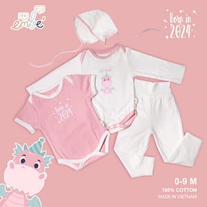 SET QUẦN ÁO SƠ SINH HÌNH RỒNG 2024- BABY DRAGON ( Hông )